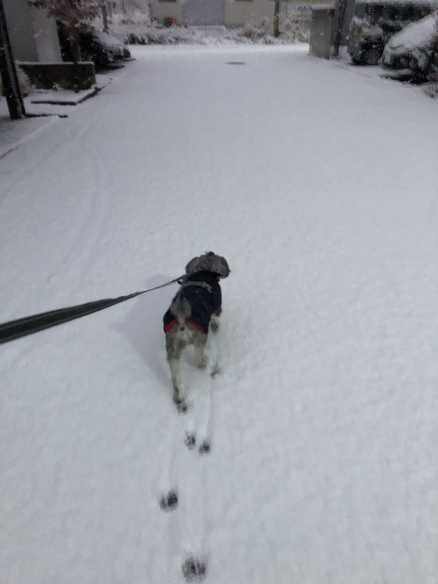 そんな朝ですが、さくら🌸は初雪に気分が乗ってお尻をフリフリで散歩です。(笑)
